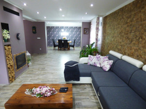 A nappaliban kandalló is beépítésre került, ami még hangulatosabbá, melegebbé teszi az otthont.