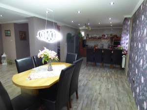Az Eladó családi ház külső szigetelése 5 cm-es, a ház 4 évvel ezelőtt teljes felújításon esett át. Igényesen felújított, minden helyiségben a falak részben festettek, részben tapéta díszíti. A padlót járólappal burkolták, a fürdőszobákban a falak csempe borítást kaptak. A bejárati ajtó és az ablakok műanyag nyílászáróval felszereltek, míg a szobákba nyíló ajtók mind fából készültek. Minden ablakon redőny van.
