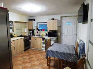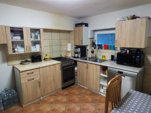 A konyhában gáztűzhely van, ami palackos gázzal működik, arra az esetre, ha nem lenne áram, tökéletes megoldás.