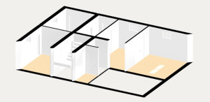 A lépcsőházon keresztül jutunk fel a 3. szintre, a tetőtérbe. Itt 3 külön nyíló szoba található, valamint egy fürdőszoba.