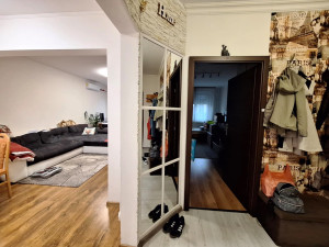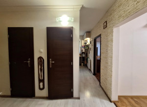 A bejárati ajtón belépve a tágas közlekedőbe érünk, amelynek a bal oldalán található a fürdőszoba és mellette a mellékhelyiség.