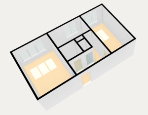 A bejárati ajtóval szemben kapott helyet a fürdőszoba, mellette pedig egy külön mellékhelyiség, míg jobbra egy külön nyíló, tágas szoba biztosítja a nyugodt pihenést.