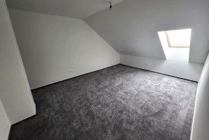 Az emeleten két nagy méretű hálószoba, valamint egy korszerű, 5,3 nm-es fürdőszoba kapott helyet, ahol a kád és élményzuhanyzó mellett dupla mosdó, bidet-wc, mosógép és törölközőszárítós radiátor is helyet kapott.