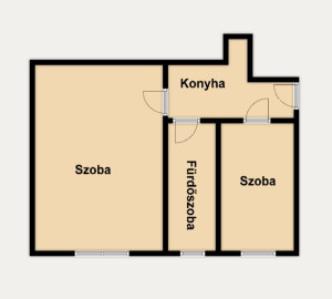 Az eladó lakás belső elrendezése átgondolt: a konyhát a közlekedőbe helyezték át, ennek köszönhetően a bal oldalon egy kényelmes méretű félszoba kapott helyet, mellette pedig egy tágas, világos fürdőszoba található. A közlekedőből nyíló nagyobbik szoba, ami kiválóan alkalmas lehet nappalinak, ahol még egy kis étkező sarkot is ki lehet alakítani.