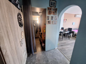 A jobb oldalon a közlekedőnél van a kis szoba, ahonnan nyílik az erkély.